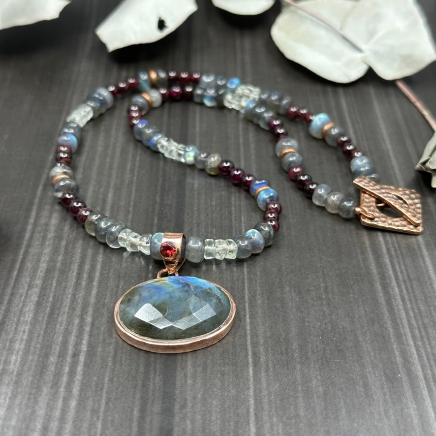 Labradorite, Garnet, and Prasiolite Necklace in Copper